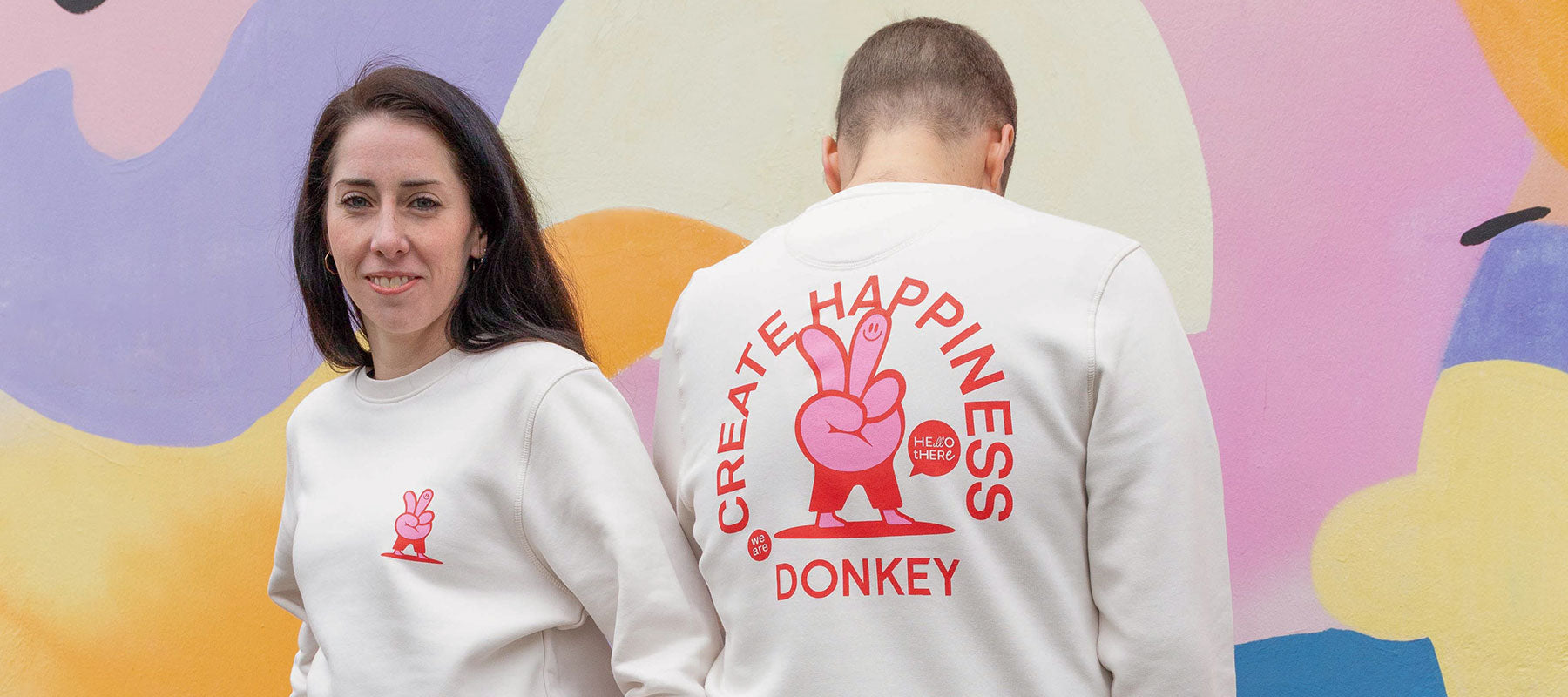 Alongside our classic DONKEY design featuring our iconic scribble — which, by the way, includes at least four donkeys if you look closely — we’ve also created a second, completely new design in collaboration with designer Christian Kandel. Its one mission? To spread happiness! Both designs are available as T-shirts and sweaters.